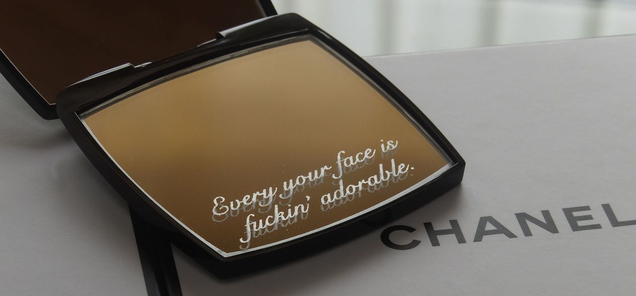 ミラーへの名入れ彫刻は
