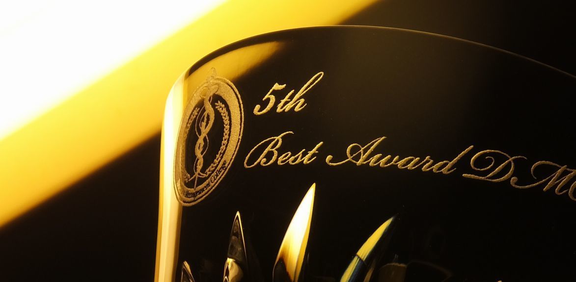 | サンドブラスト | ・温かく、深い、重厚感のある仕上がり ・マットな質感とクリスタルとの美しい陰影 ・手作業による芸術性や「味」がある ・一度彫ると消えない永続性 | ・微細な文字や極めてシャープな表現は苦手 ・制作に時間がかかる ・手作業のため微細な個性が生まれる |