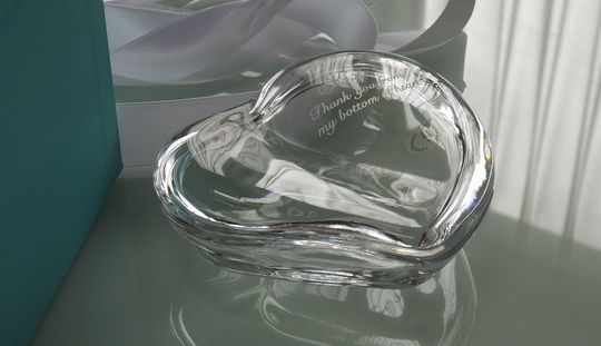 ティファニーのクリスタルアイテムは、結婚記念日にぴったりです。特にペアグラスやクリスタルボックスに名入れを施すことで、二人の絆を深める素晴らしい記念品となります。