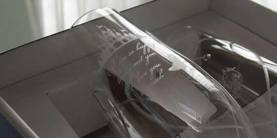 ロマンティックなデザインや優雅さ、可愛らしさを大切にするカップルにお薦めです。二人のイニシャル入りグラスは、思い出深いプレゼントになります。