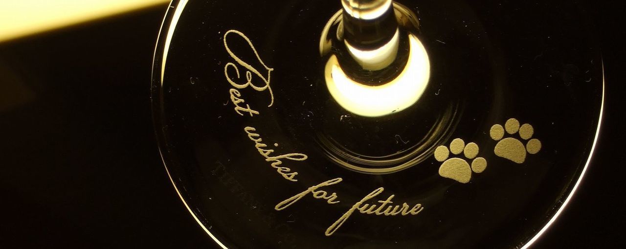 ■ 魅力:文字を極小にし、字間を贅沢に開けることで、グラスを傾けた時にクリスタルのカットが主役になります。
