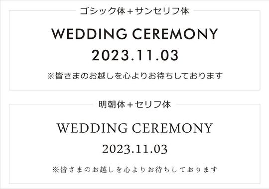 また、『お薦めの書体を選んでほしい』『2つの書体を見比べたい』というご要望にもイメージデザインを作成し、お応えいたしております。